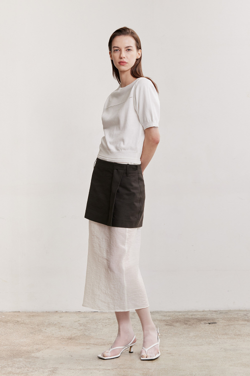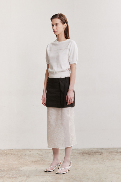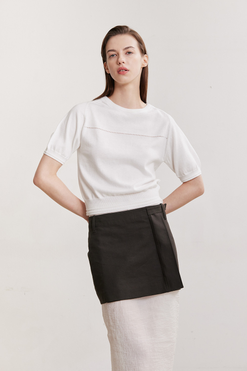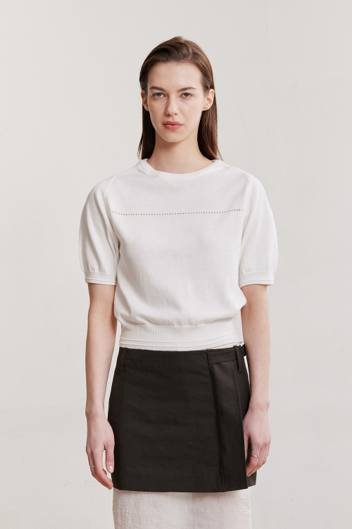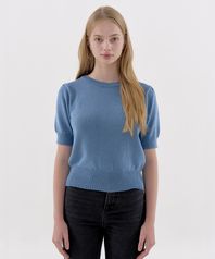 - 나일론이 섞인 코튼 블렌디드 원사로 신축성과 부드러운 터치감이 우수한 퍼프 니트 반팔 탑입니다.