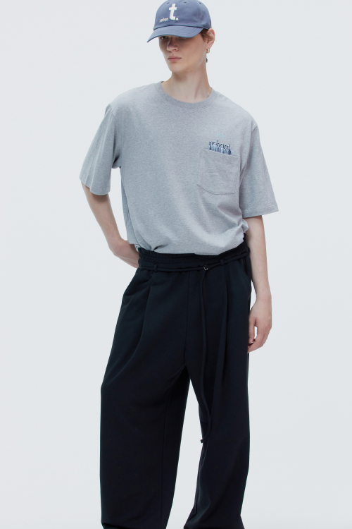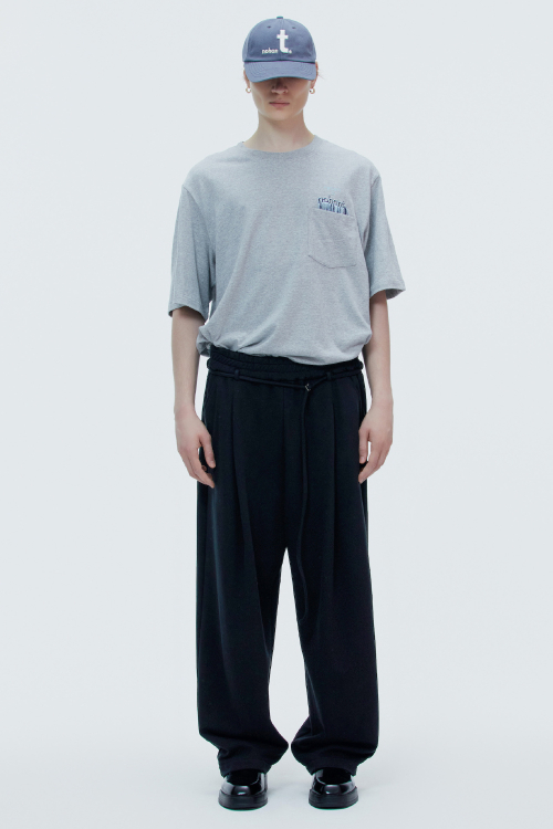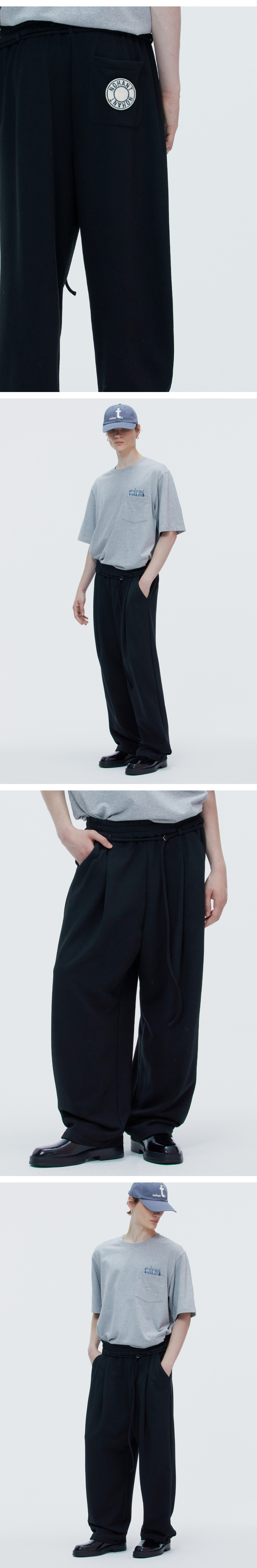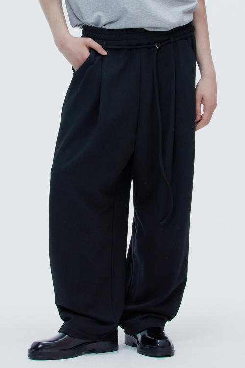ONE TUCK JERSEY BELT PANTS BLACK