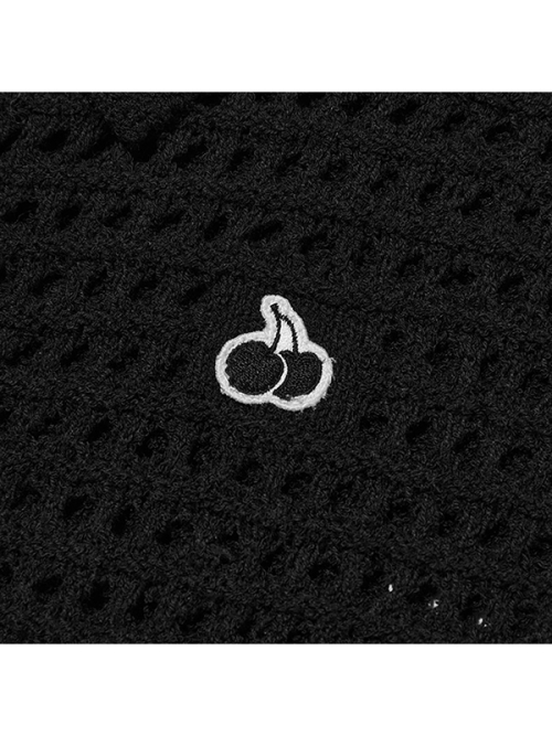 모노 체리 네트 니트 숏 가디건