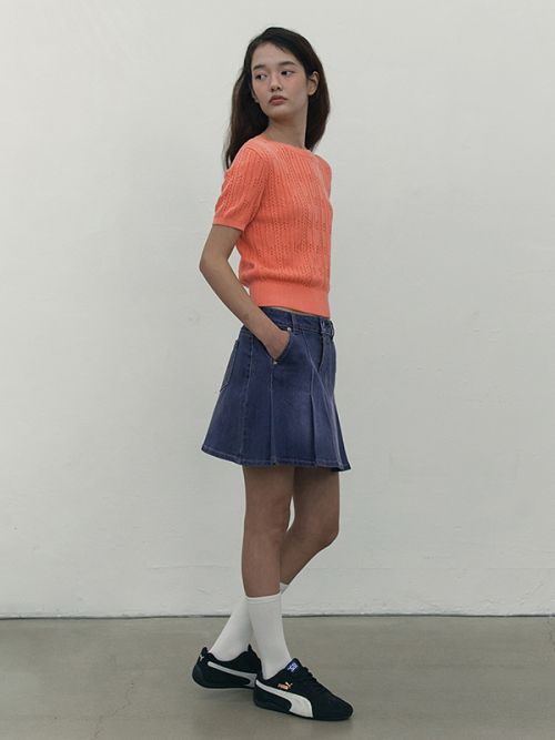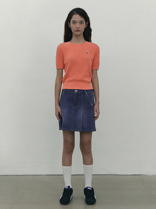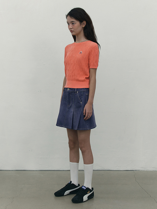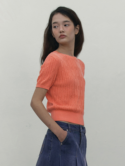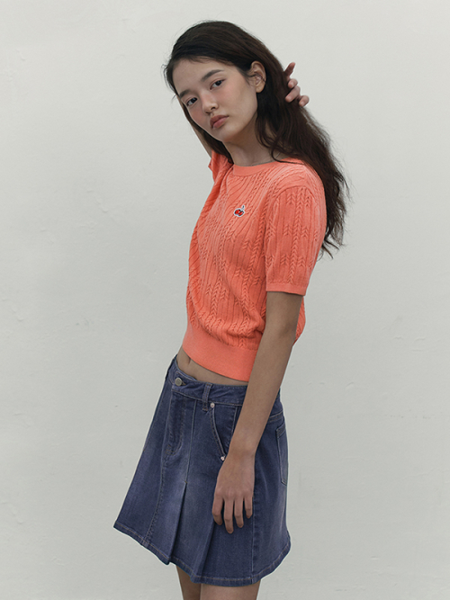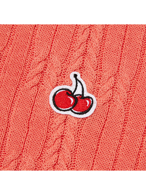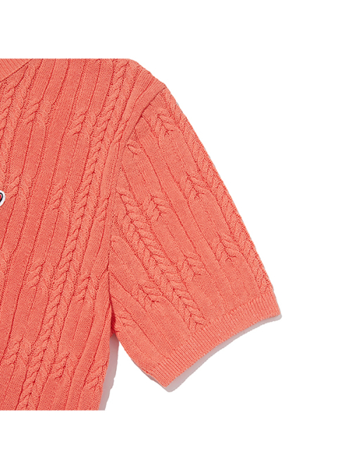 스몰 체리 케이블 크롭 숏 슬리브 니트
