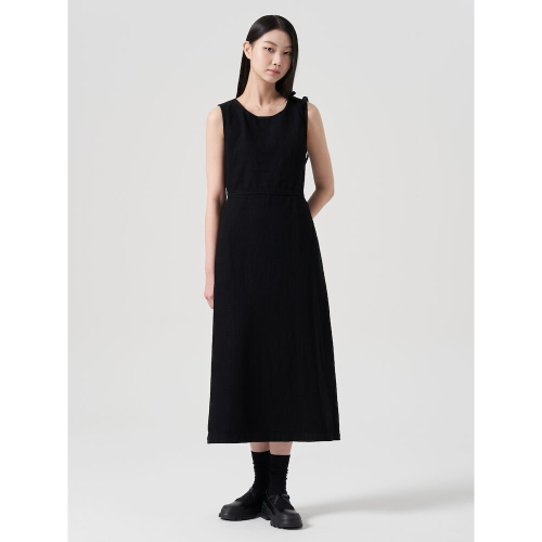 티셔츠 레이어링부터 단품 착장까지 활용도 높은 데님 원피스입니다. 편안하게 착용할 수 있는 레귤러핏으로, 허리 끈을 조절하여 다양하게 연출할 수 있습니다. 검정 컬러로 디자인되어 다양한 아이템과 매치하기 좋습니다.