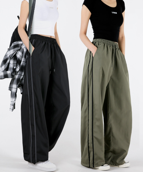 배색라인 와이드 트레이닝 트랙팬츠