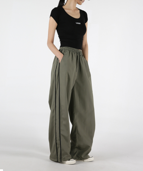 라칸 사이드 라인 스트링 와이드 팬츠 남녀공용