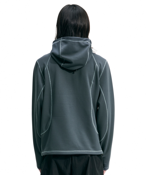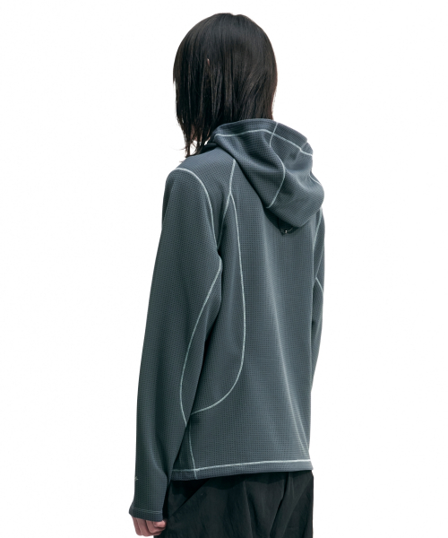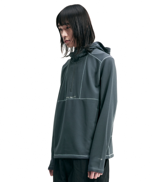 HALF ZIP MESH HOODIE PULLOVER (CHARCOAL)