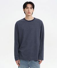 핀 스트라이프 릴렉스드 긴소매 티셔츠 [네이비/화이트]