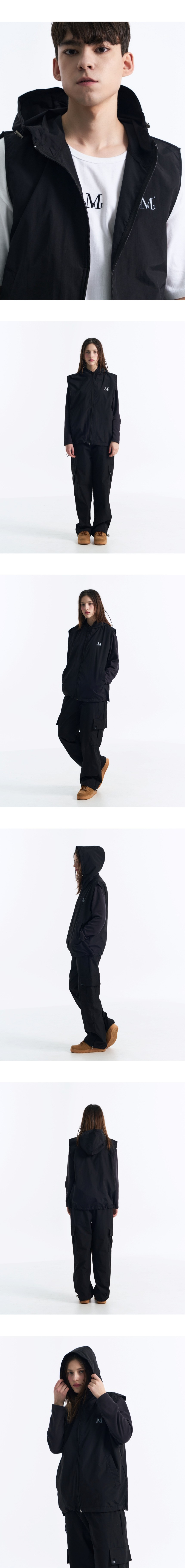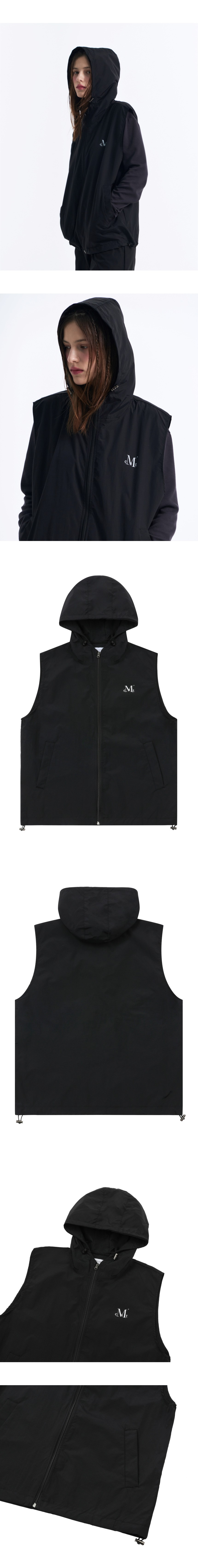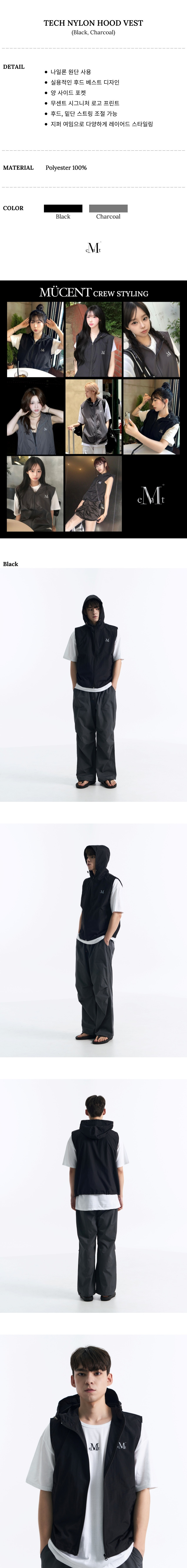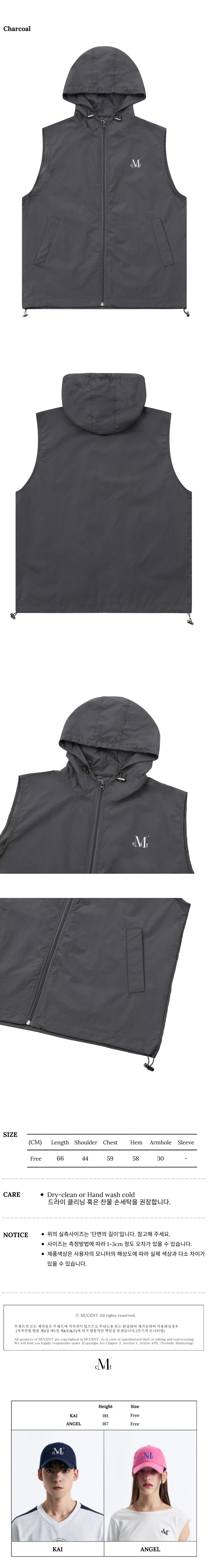 테크 나일론 후드 베스트 민소매 아노락 바람막이 조끼 (블랙, 차콜)