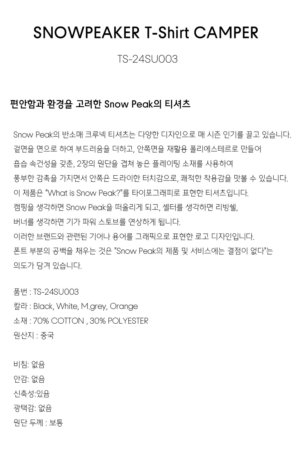 스노우피커 캠퍼 티셔츠 - 오렌지 / TS-24SU003OR