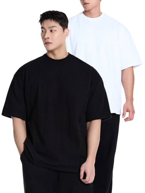 [2PACK] 퍼펙트 특양면 무지 오버핏 반팔 티셔츠