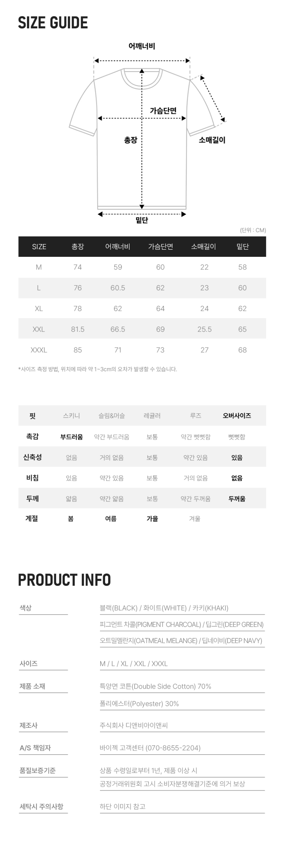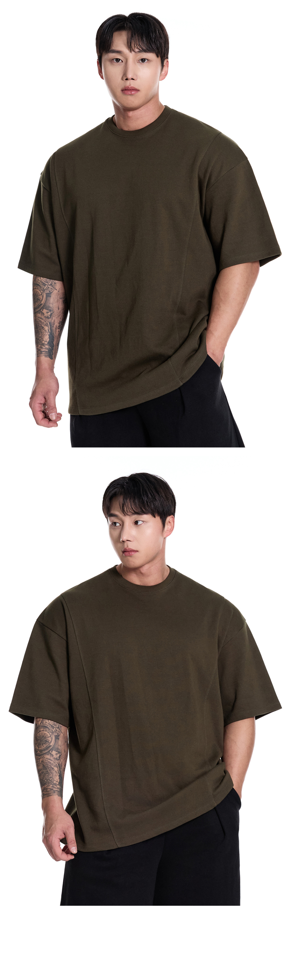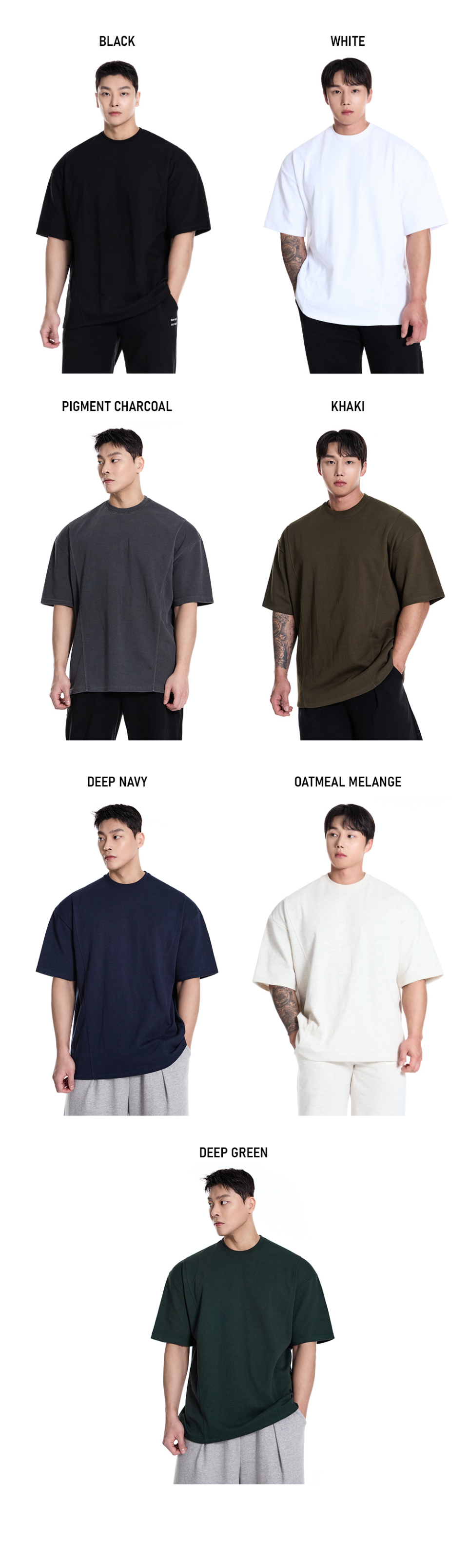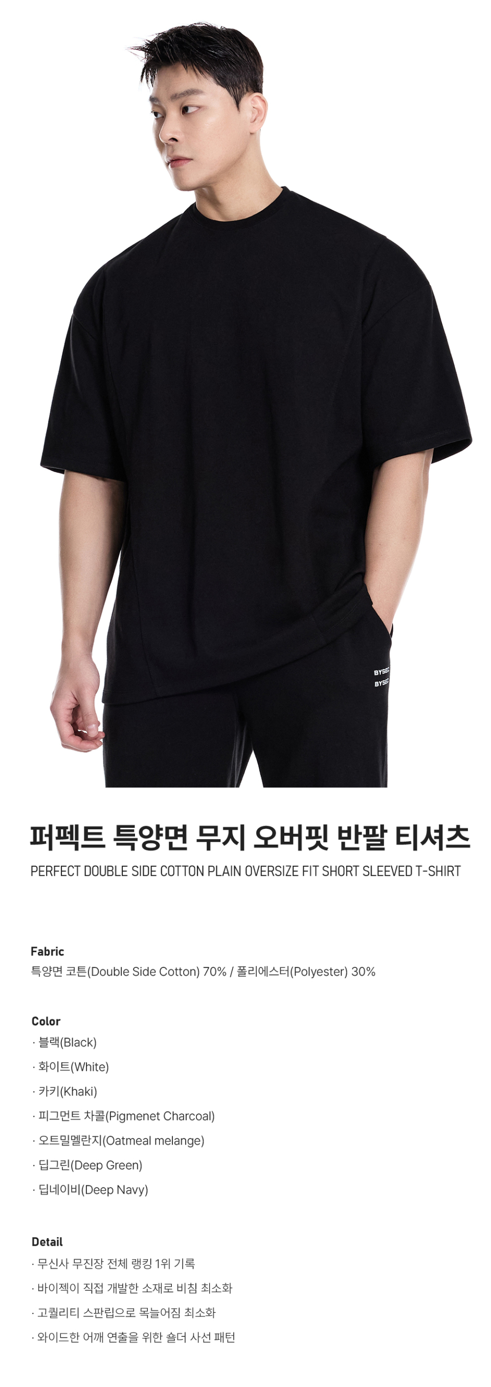 퍼펙트 특양면 오버핏 숄더 2중절개 무지 반팔 티셔츠_7Color