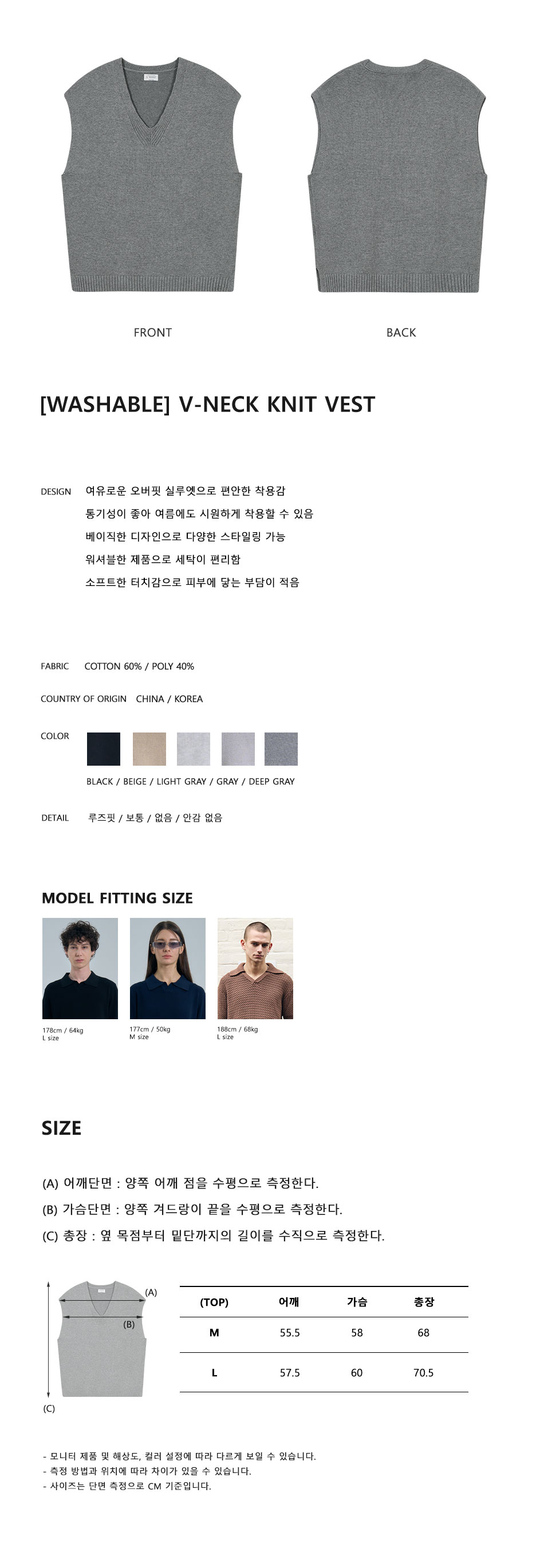 86-IRO316 [워셔블] 브이넥 니트 베스트 딥그레이