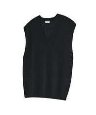 86-IRO314 [워셔블] 펀칭 브이넥 니트 베스트 블랙