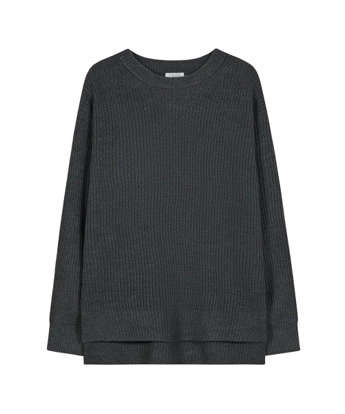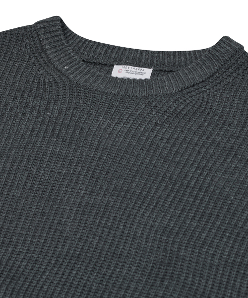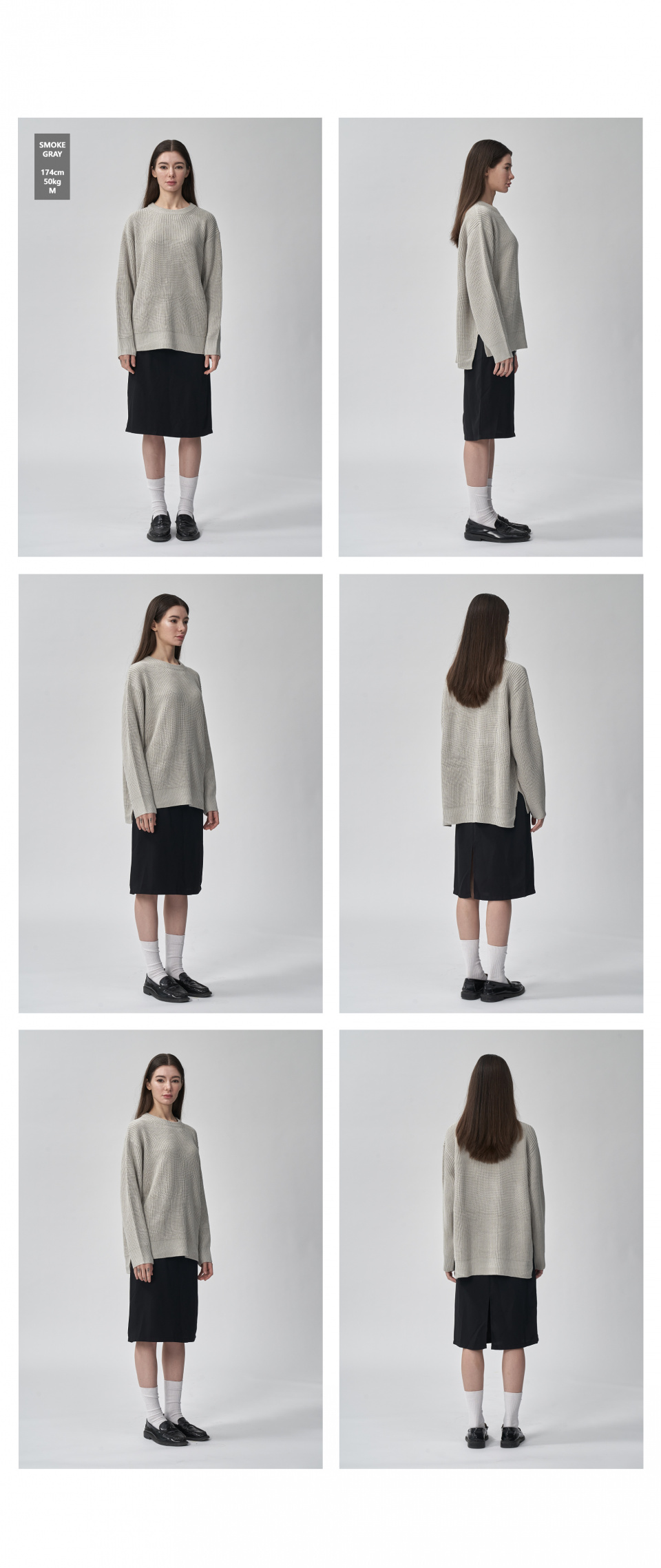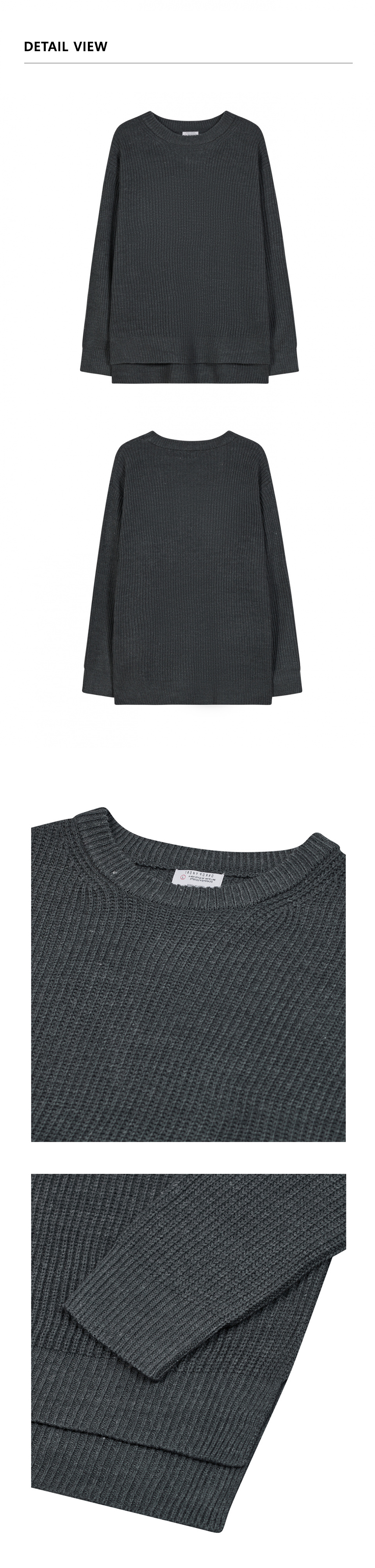 86-IRO318 라운드 사이드 슬릿 하찌니트 스모크그레이