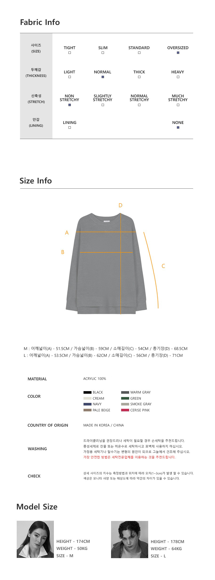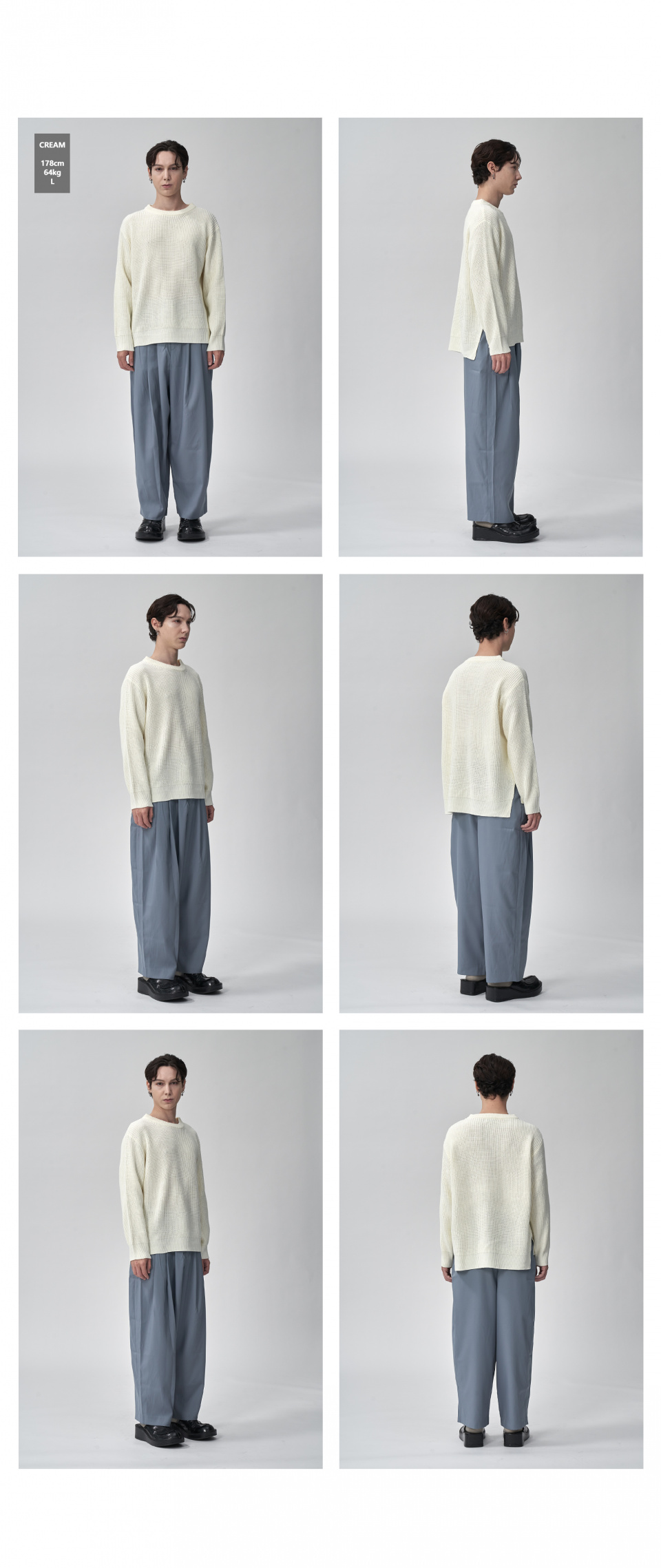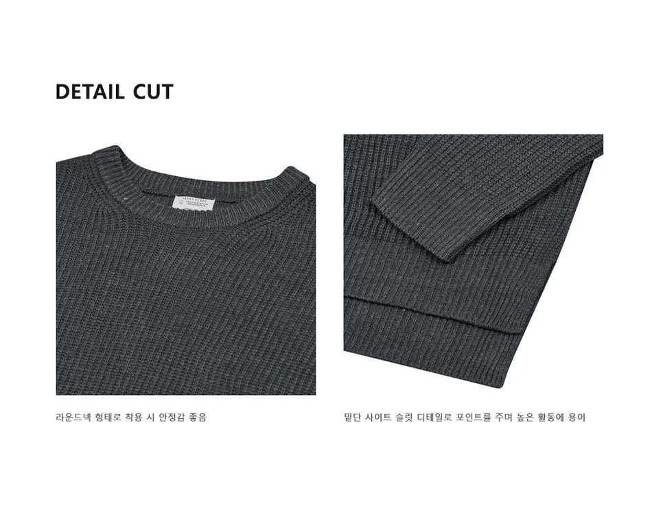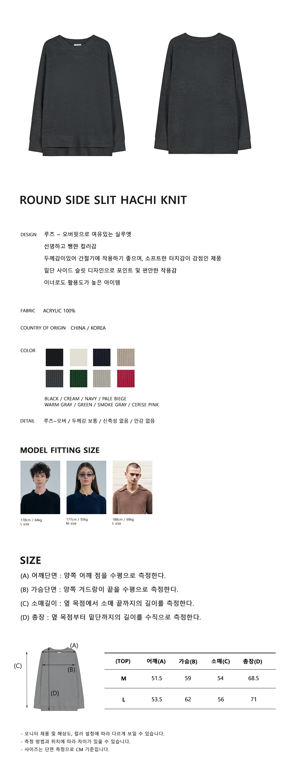 86-IRO318 라운드 사이드 슬릿 하찌니트 웜그레이