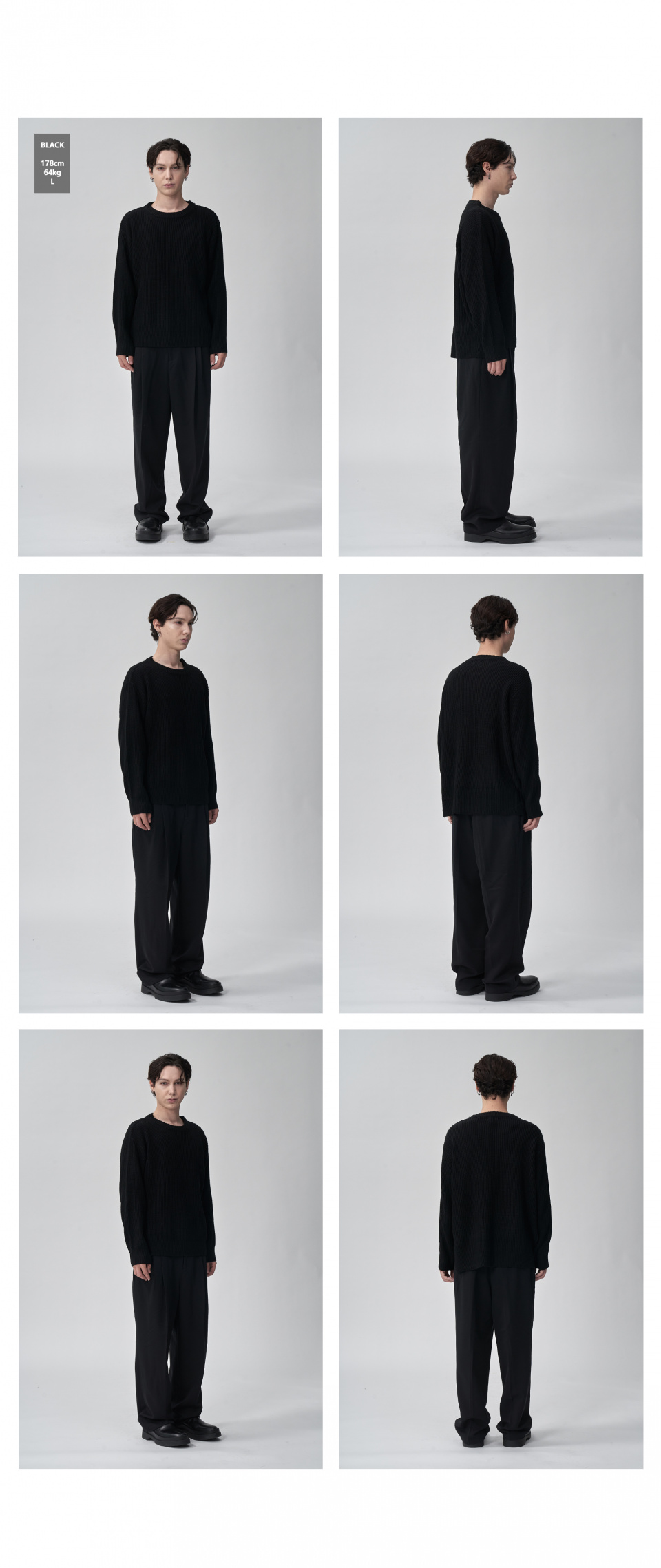 86-IRO318 라운드 사이드 슬릿 하찌니트 블랙
