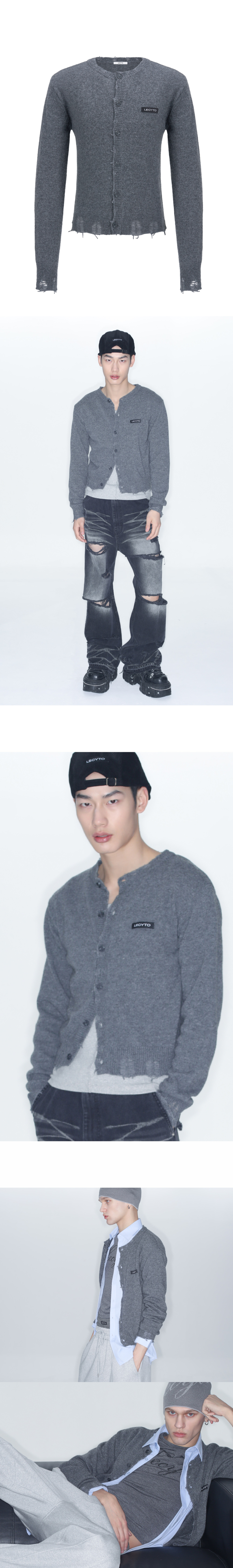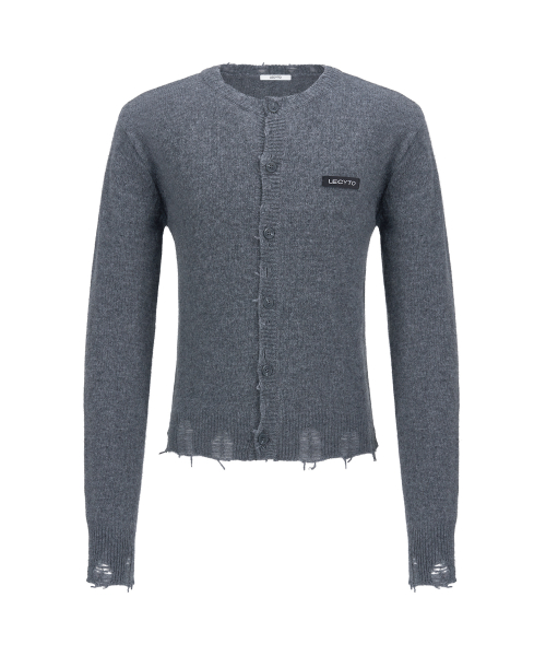 Destroyed Round Wool Knit Cardigan_[Charcoal]