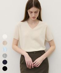 (우먼)캐시10 울90 홀가 브이넥 하프 니트 - 6 COLOR