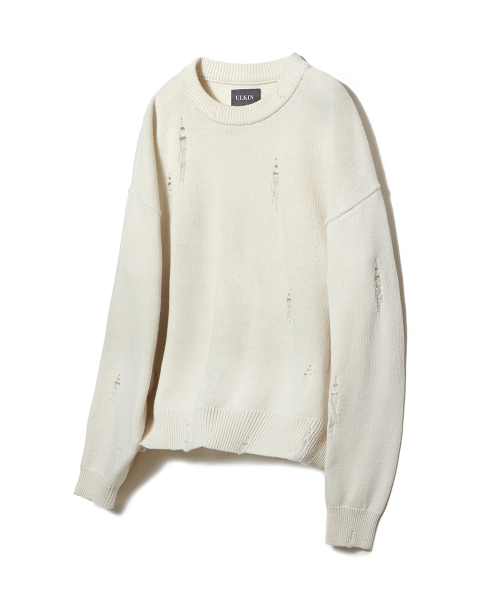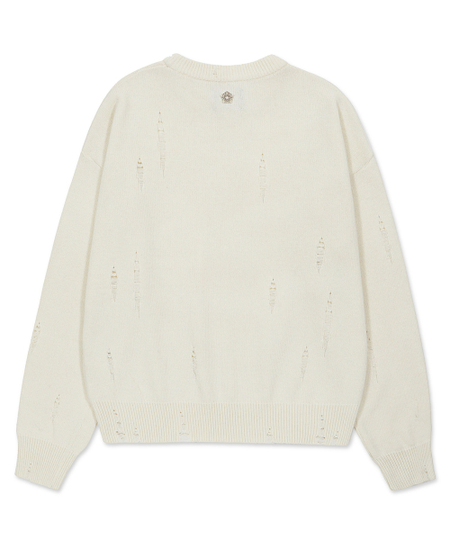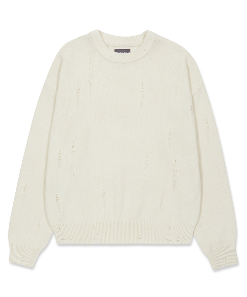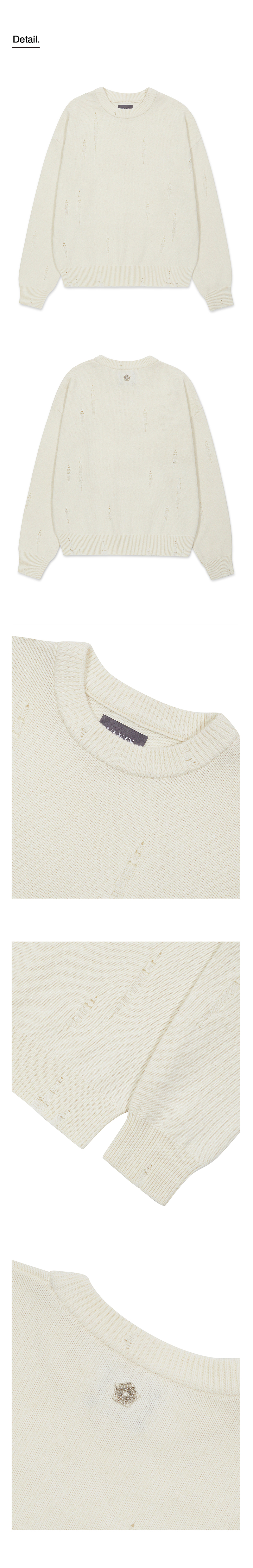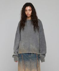 전통염색 감, 먹 데미지 라운드 니트_그레이