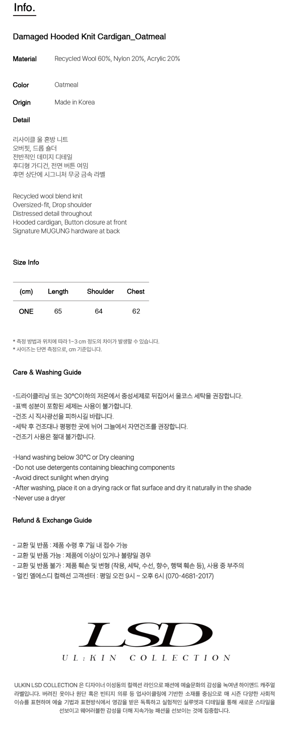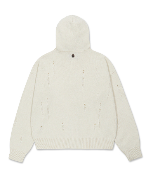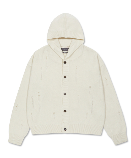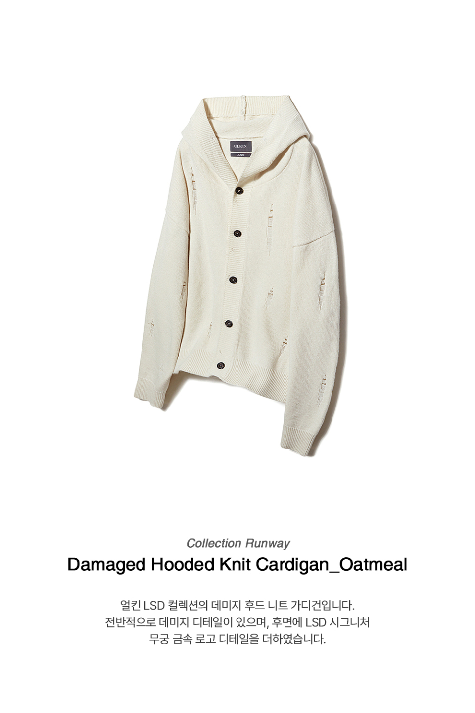 [런웨이] 데미지 후드 니트 가디건_오트밀