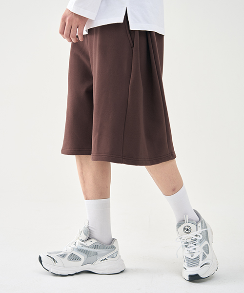 컴피 인버티드 플리츠 스웻 하프 팬츠 [BROWN]