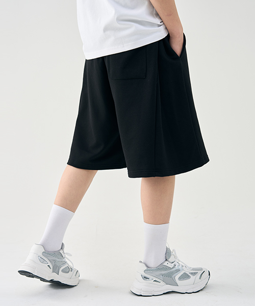 인버티드 플리츠 버뮤다 데님 팬츠 [BLACK]