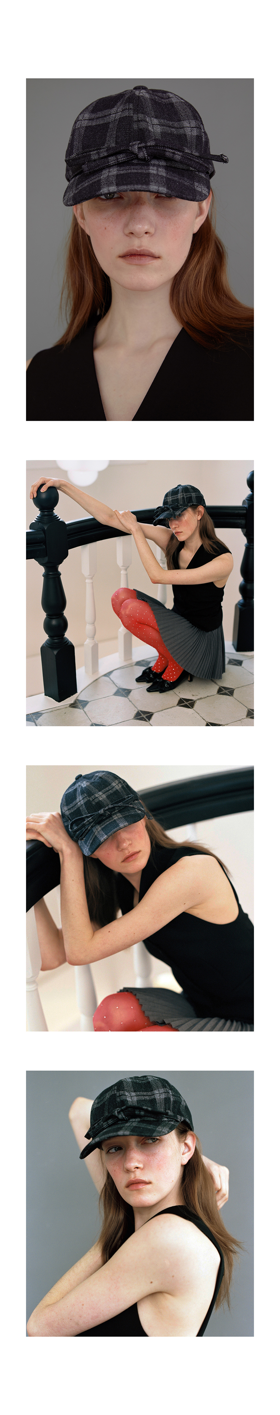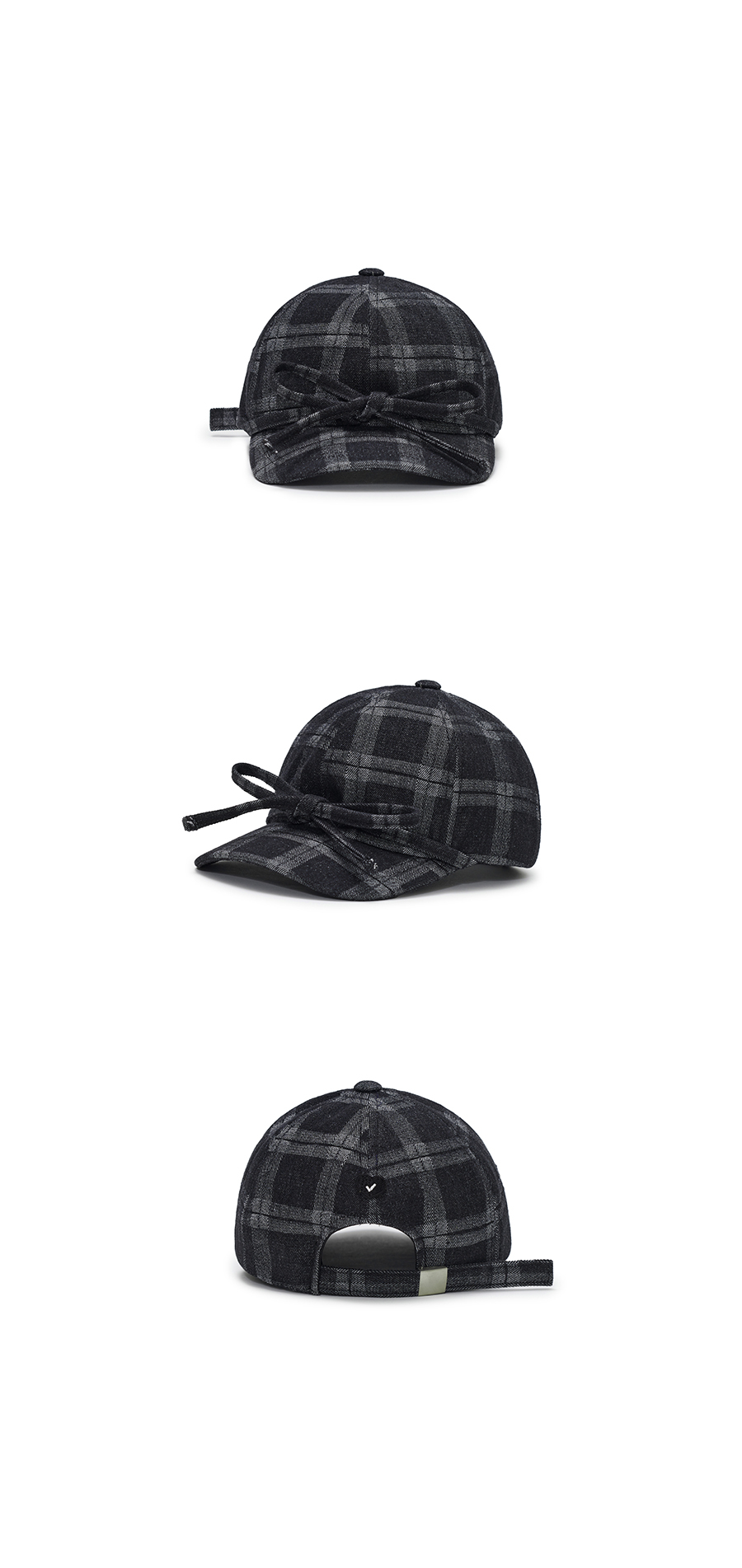 베이직 볼 캡_리본_체크 블랙
