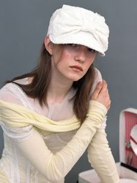 벨보이 캡_리본_웨이브 화이트