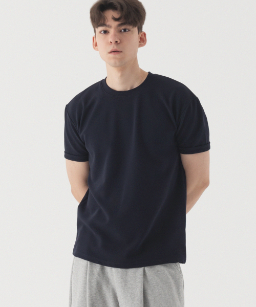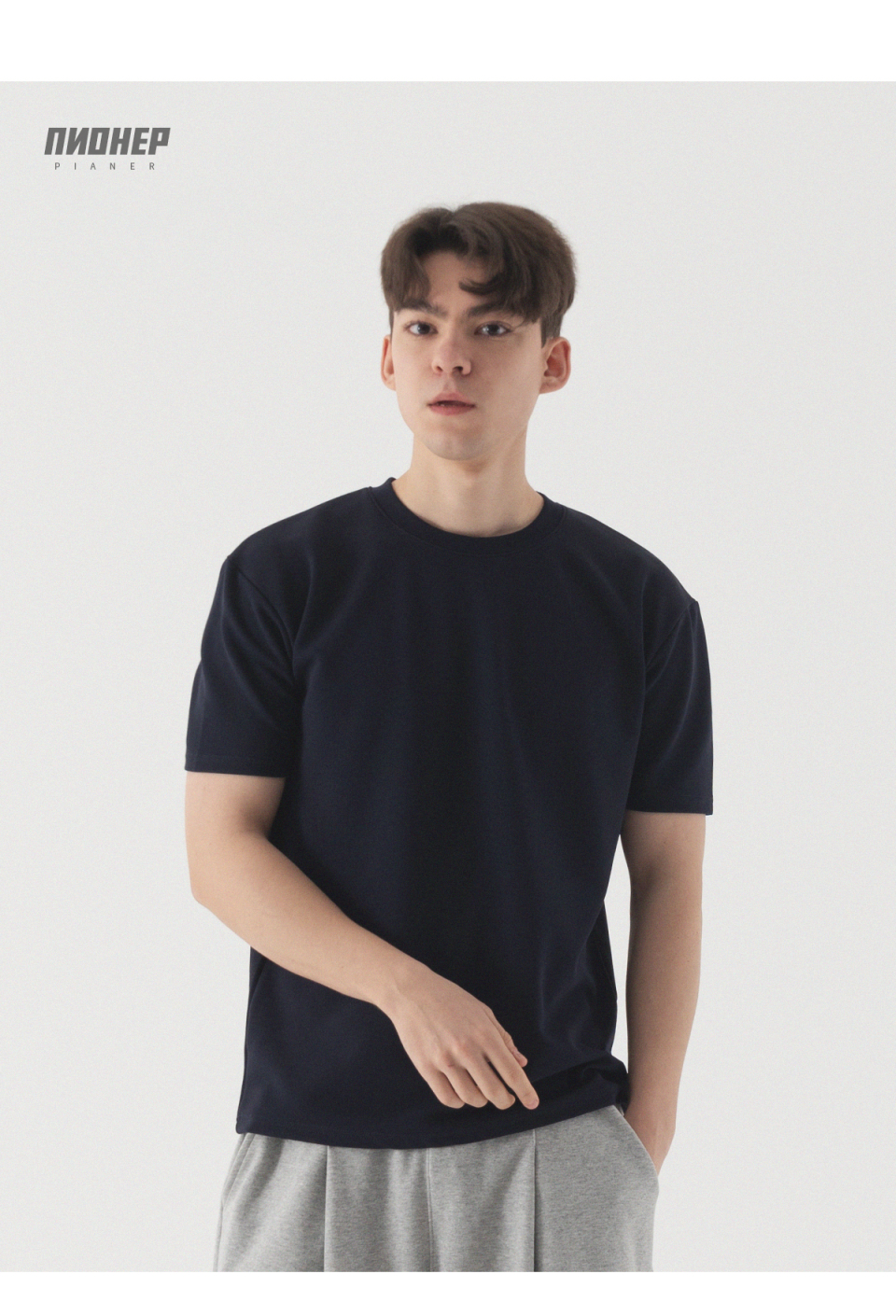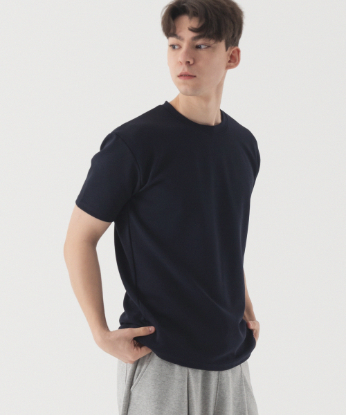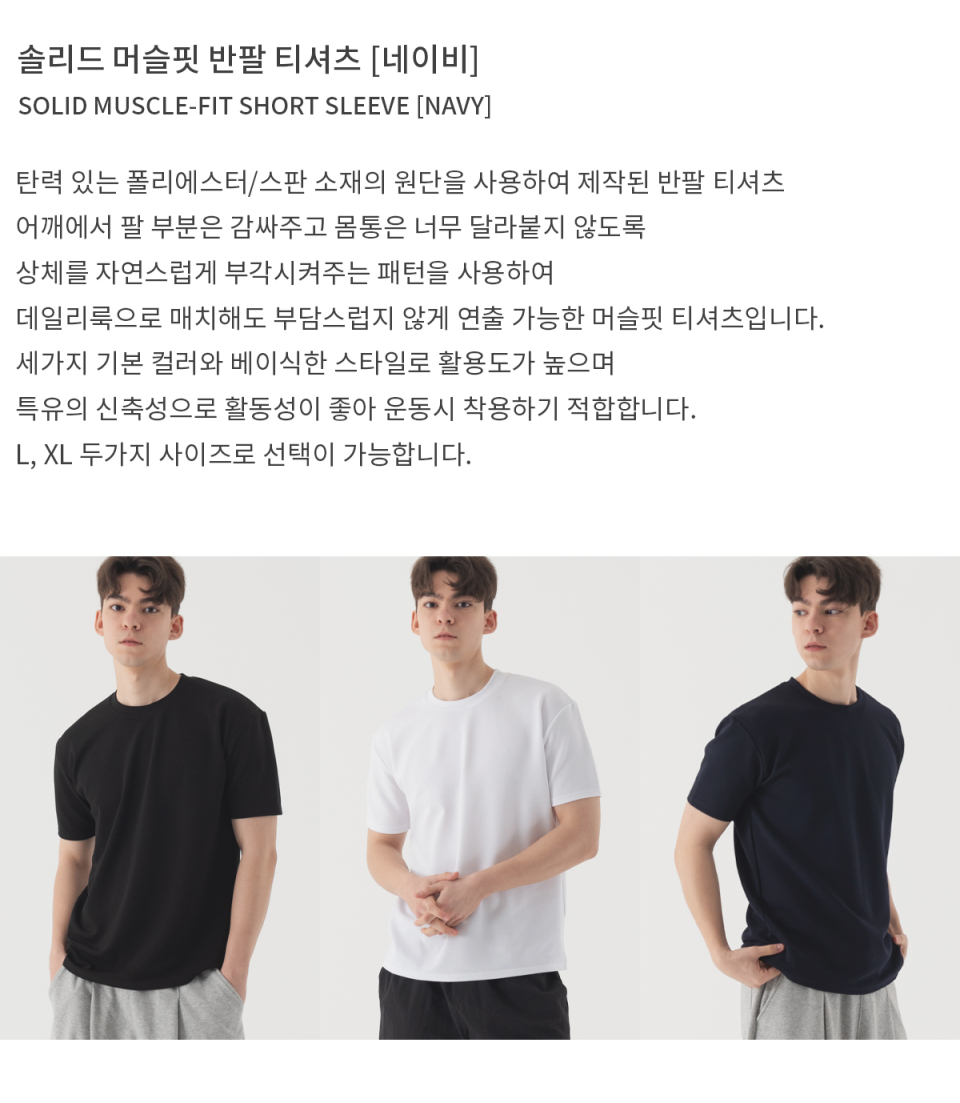 솔리드 머슬핏 반팔 티셔츠 (네이비)