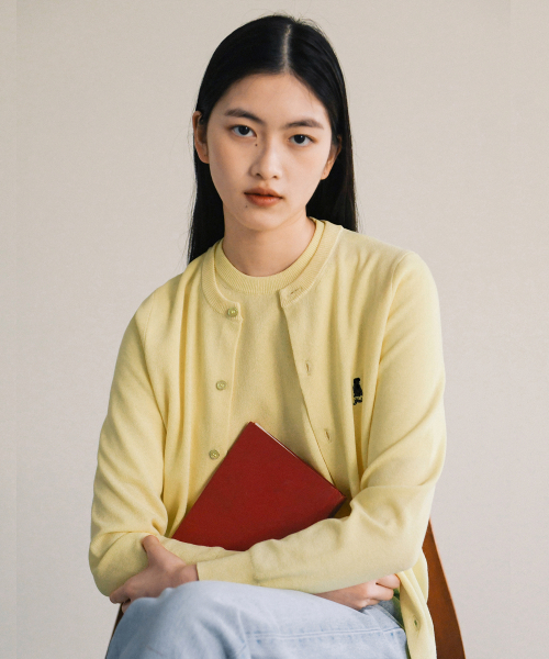 우먼즈 케이블 숏슬리브 가디건_라이트 옐로우