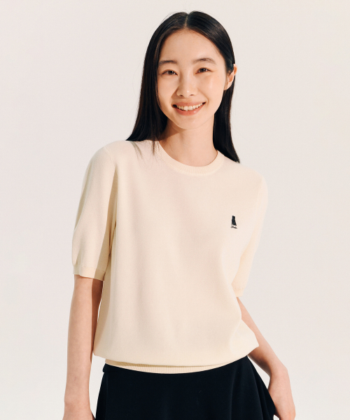 우먼즈 케이블 숏슬리브 가디건_아이보리