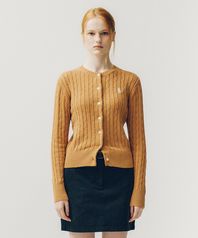 우먼즈 케이블 라운드 가디건_카멜