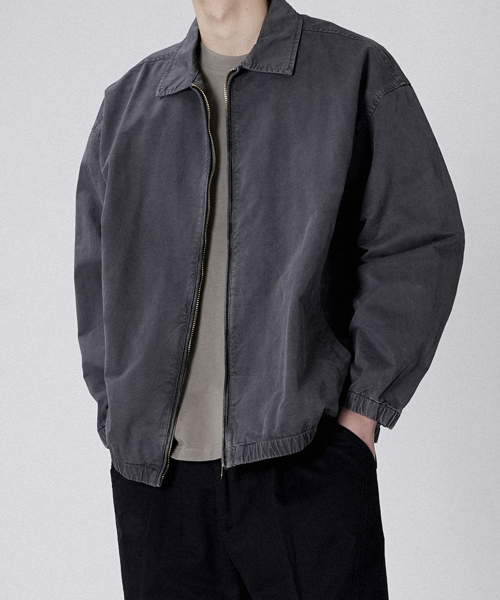 워시드 코튼 블루종 점퍼 자켓 다크그레이