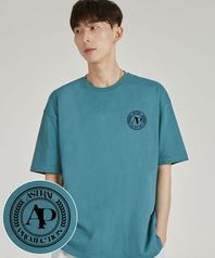 에이피 스포티 엠블럼 라운드 넥 15수 면 반팔 티셔츠_블루그린