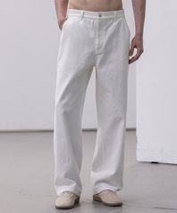 트윌 코튼 세미 와이드 팬츠 [화이트]