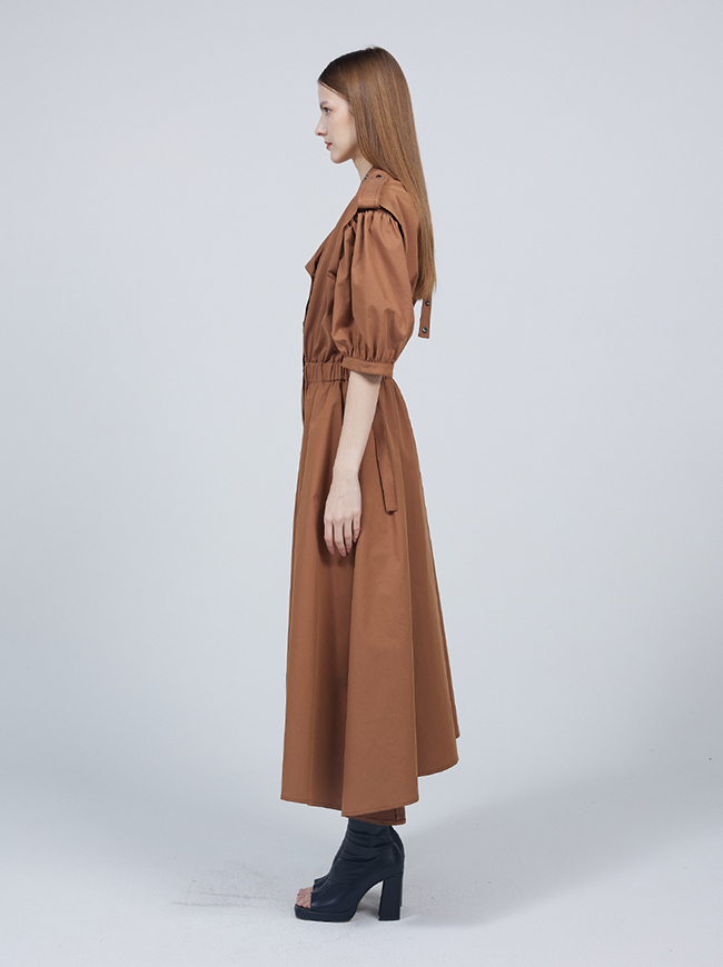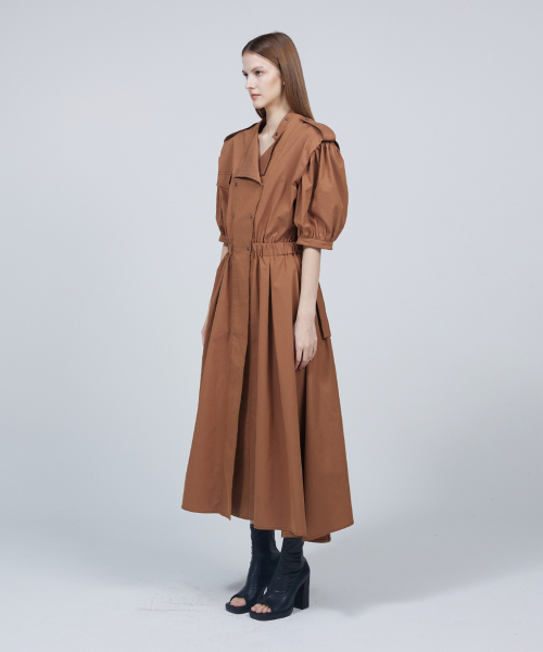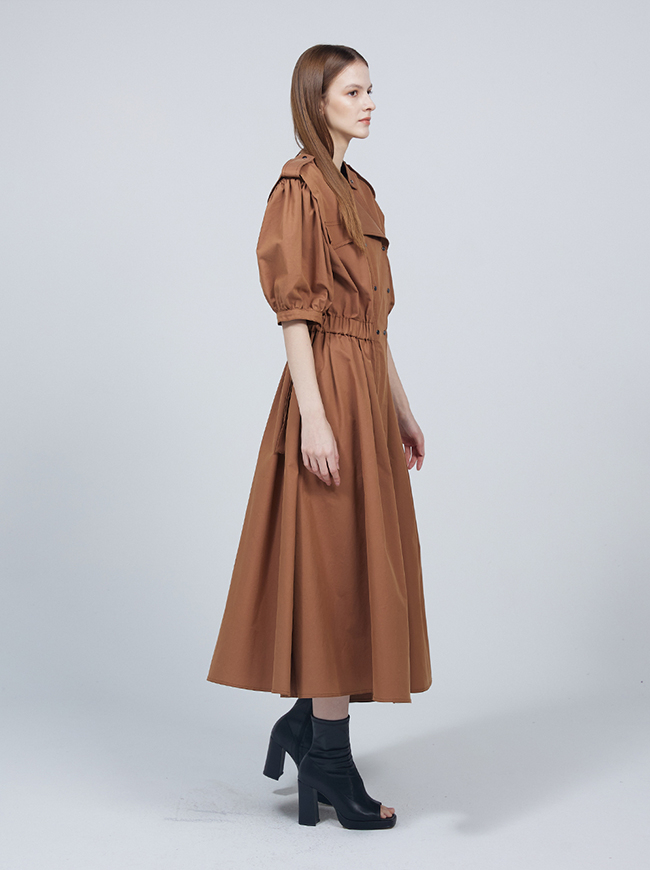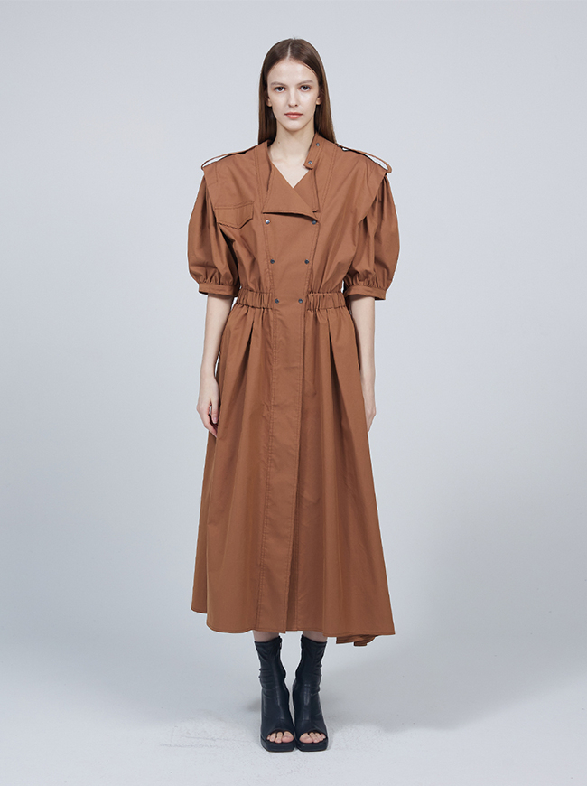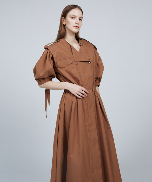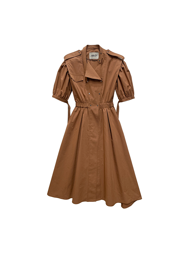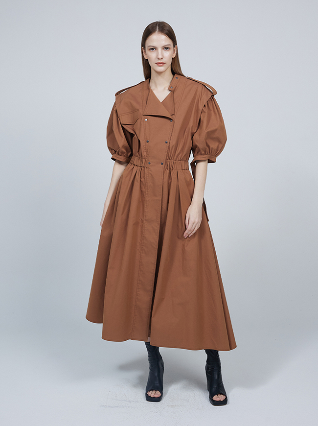 숏 퍼프 슬리브 트렌치코트 드레스