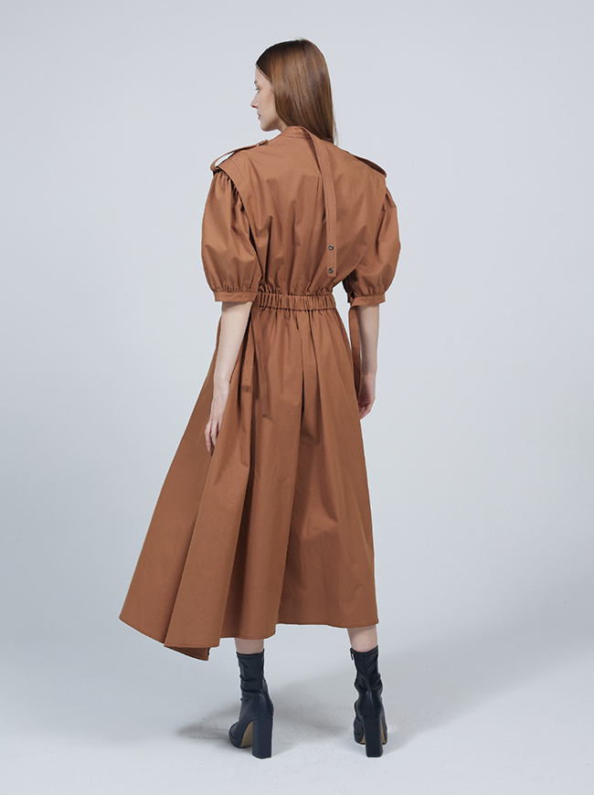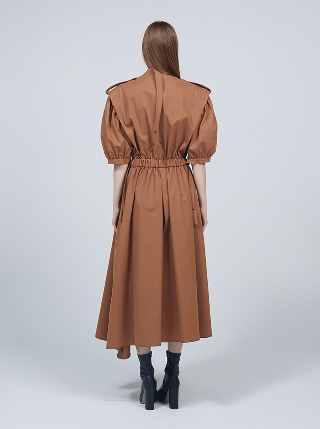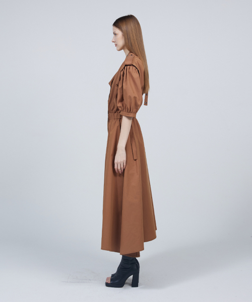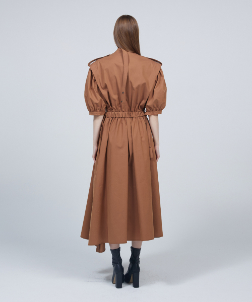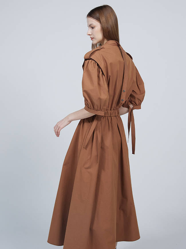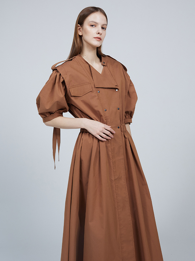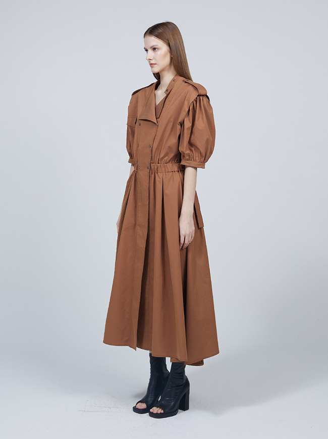 숏 퍼프 슬리브 트렌치코트 드레스