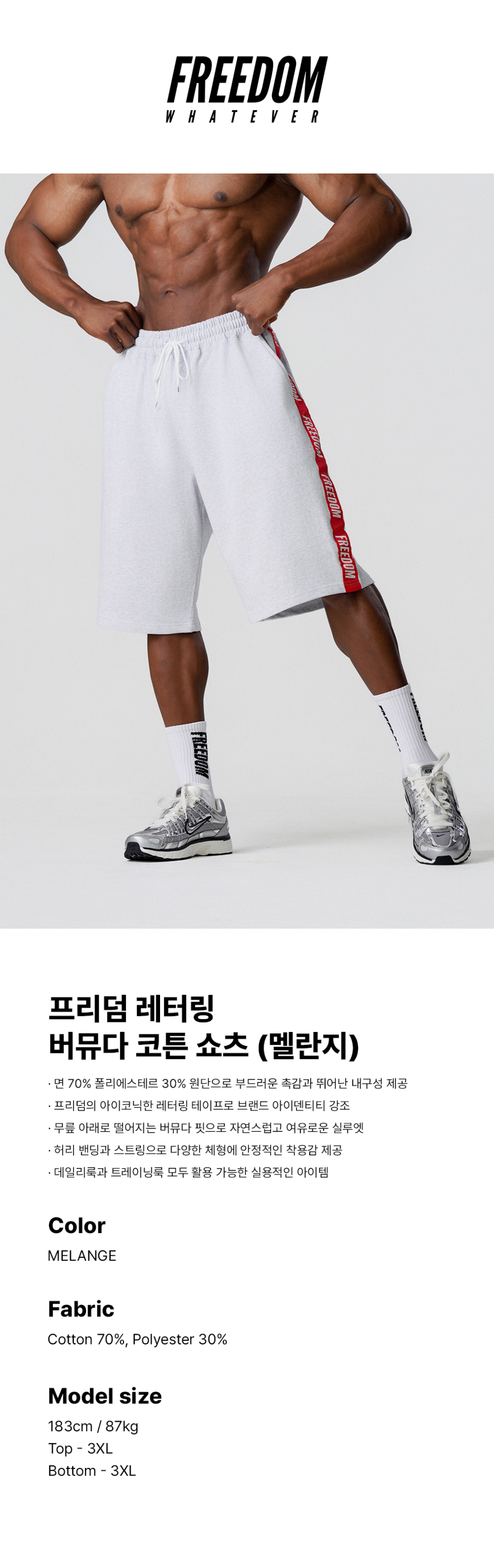 프리덤 레터링 버뮤다 코튼 쇼츠 (멜란지)