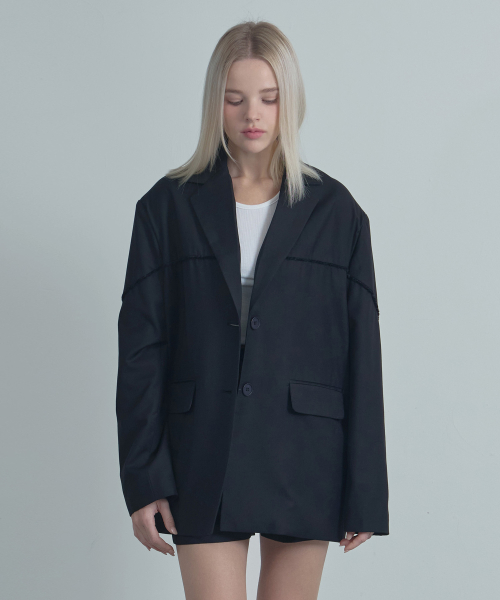 Line Single Blazer Jacket-Black