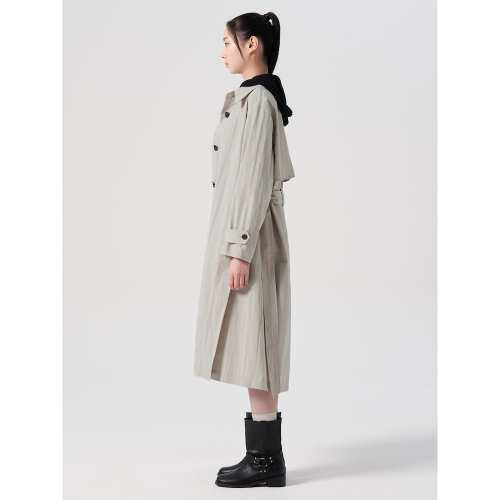 간결한 디자인으로 봄에 입기 좋은 세련된 분위기를 연출한 트렌치코트입니다. 부드럽고 쾌적한 면 혼방 소재를 사용하여 착용감이 편안합니다. 베이지 색상의 아이템으로 데님 팬츠와 함께 매치하여 캐주얼하게 코디할 수 있습니다.