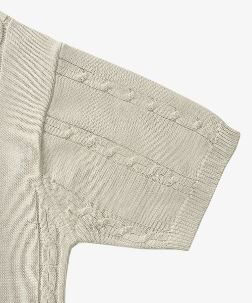 클래식 케이블 라운드넥 하프 니트 (KHAKI BEIGE)