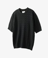 클래식 케이블 라운드넥 하프 니트 (BLACK)