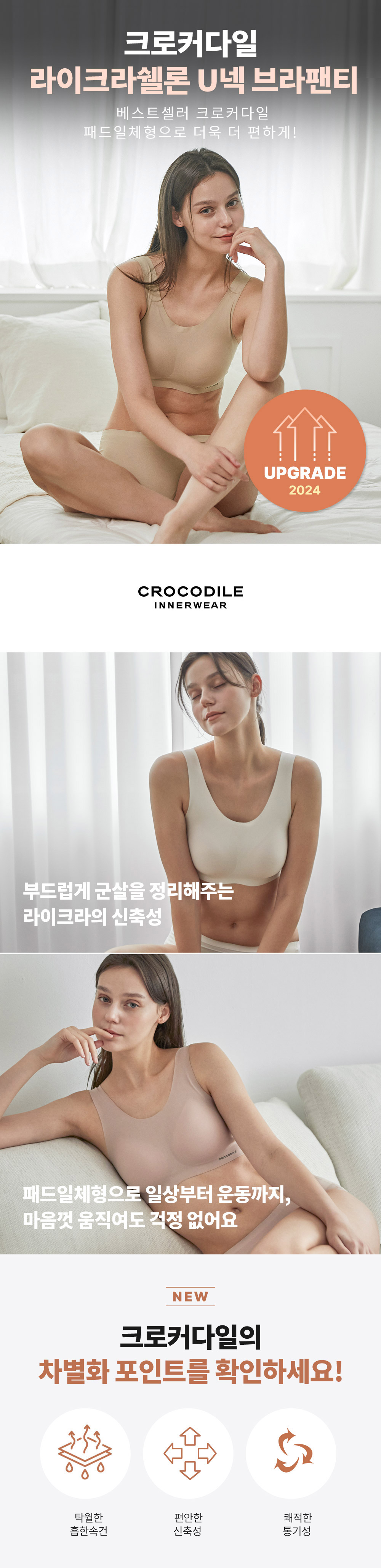 크로커다일 이너웨어(CROCODILE INNERWEAR)의 시그니처 심리스 라인은 날아갈 듯 가볍게, 안 입은 듯 편안하게 그리고 매일 아침의 상쾌함을 선사하는 데일리 언더웨어 브랜드입니다.