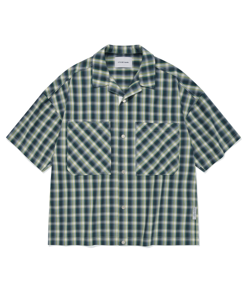 Ombre Check Half Sleeve Shirt (TEAL GREEN)