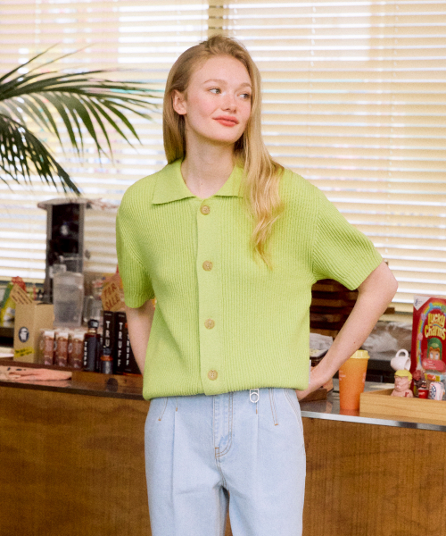 Crochet Half Sleeve Cardigan (GREEN TEA)