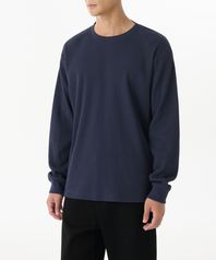 와플 릴렉스드 크루 넥 긴소매 티셔츠 [네이비]
