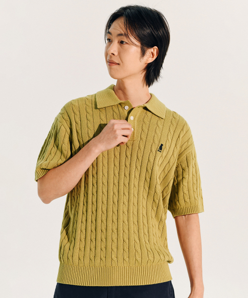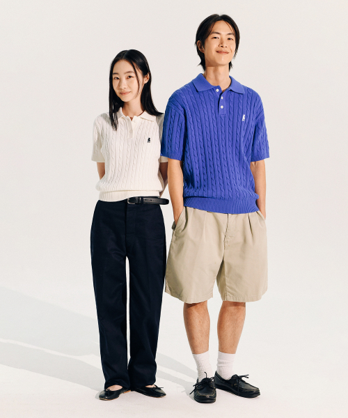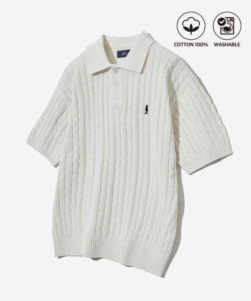 헤리티지 댄 반팔 폴로 니트 아이보리