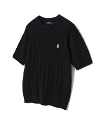 헤리티지 댄 케이블 반팔 라운드 니트 블랙