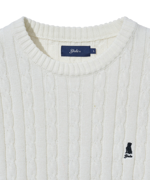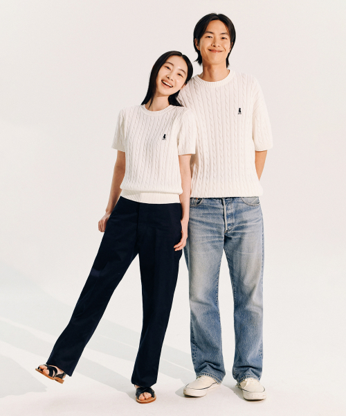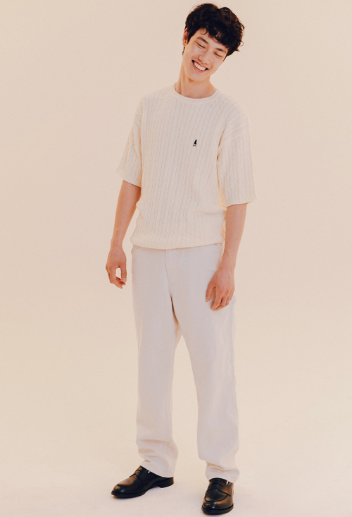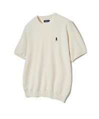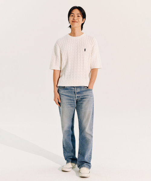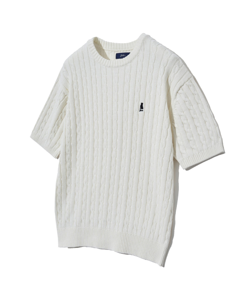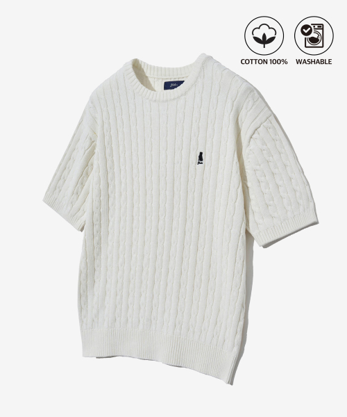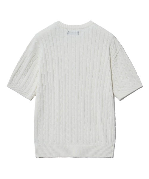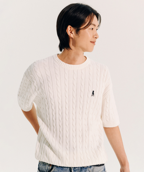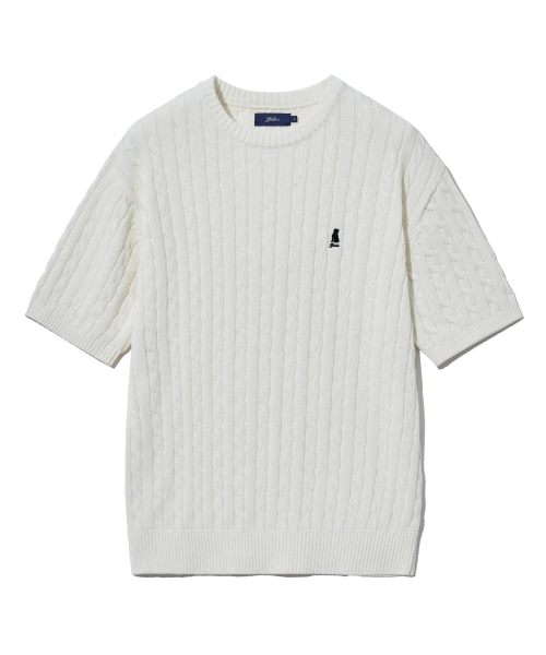 헤리티지 댄 케이블 반팔 라운드 니트 아이보리