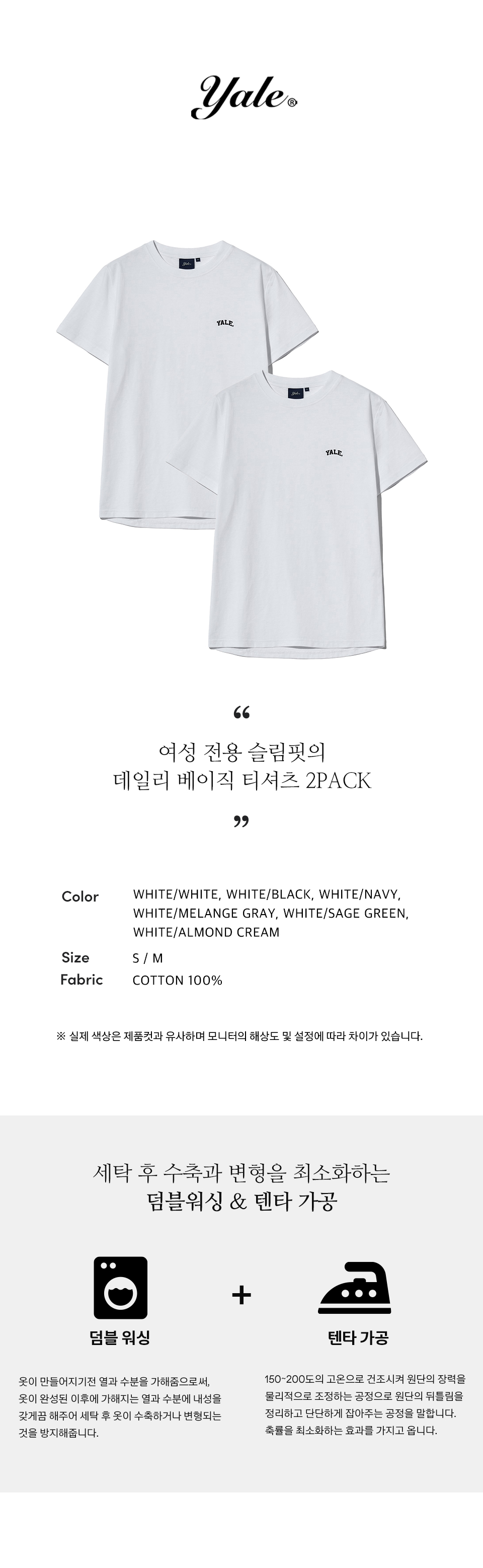 2PACK 우먼즈 스몰아치 베이직 반팔티셔츠 화이트/화이트