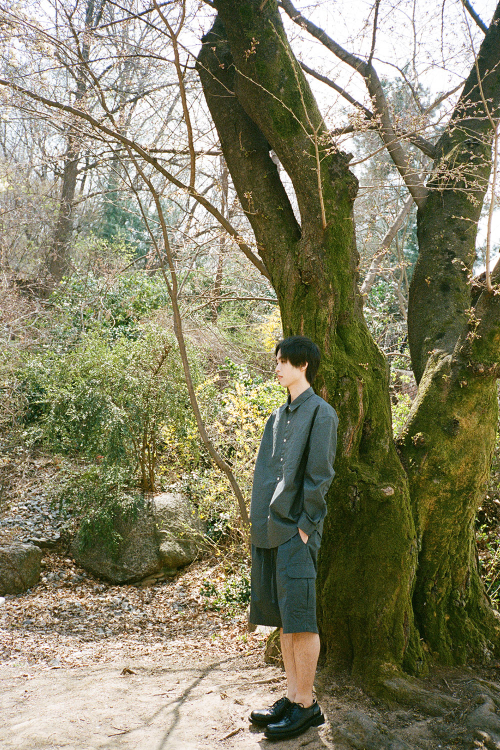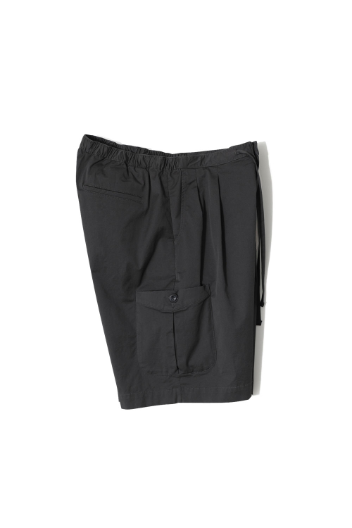 Core Point : 키스톤 카고 팬츠의 반바지 형태로서 소재와 실루엣을 다르게 적용하여 볼륨감 있고 편안한 실루엣에 초점을 둠