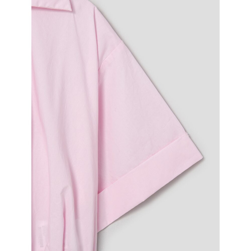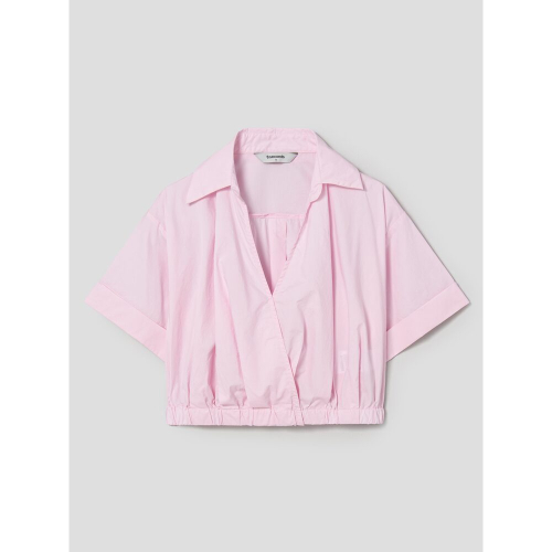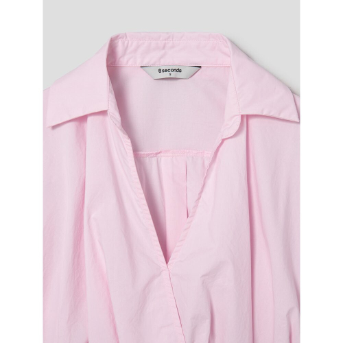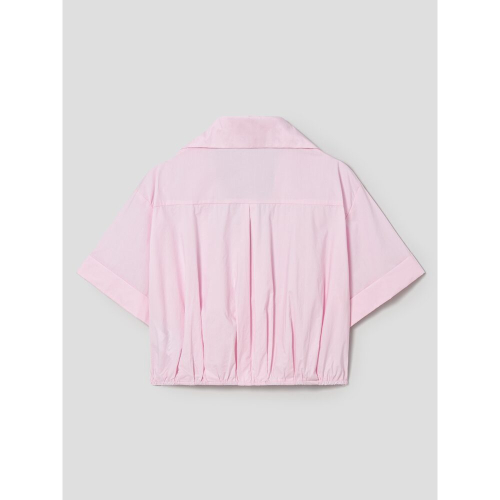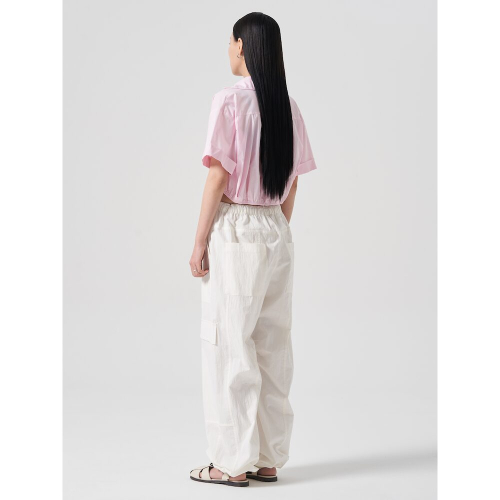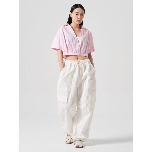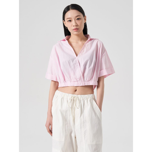 부드러운 핑크 색상으로 화사한 멋을 연출한 크롭 셔츠입니다. 밑단 부분에는 밴딩 디테일이 있어 짧은 기장의 디자인임에도 부담스럽지 않게 착용할 수 있습니다. 다양한 데님 제품과 함께 코디하여 상큼한 룩을 연출할 수 있습니다.